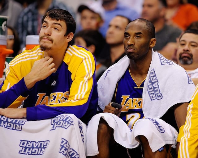 With the Lakers fighting to secure the eighth and final playoff berth in the Western Conference, coupled with injuries on the team, Bryant began playing almost all 48 minutes each game. On April 10, 2013, he became the first player in NBA history to get 47 points, eight rebounds, five assists, four blocks, and three steals in a game. Two days later, Bryant suffered a torn Achilles tendon against the Golden State Warriors, ending his season. Bryant’s injury came while he was playing seven consecutive quarters and at least 40 minutes for seven consecutive games. The 34-year-old Bryant was averaging his most minutes (38.6) in six years, and only Portland rookie Damian Lillard was averaging more minutes. Lakers general manager Mitch Kupchak had spoken to Bryant about his extensive playing time 10 days earlier, but Bryant insisted the minutes needed to continue given the Lakers’ playoff push. He had surgery on April 13 to repair the tear, and it was estimated that he would miss six to nine months. Bryant ended the season with customary averages of 27.3 points, 5.6 rebounds, and 6 assists per game on 46.3% shooting. However, The New York Times called his leading of the Lakers back into playoff contention “perhaps some of the finest work of his career.” He reached 40 points eight times during the season, and Bryant had 10 or more assists in his role as distributor 11 times. Bryant was dubbed “Magic Mamba” after the passing skills of Magic Johnson. Bryant’s assists were the second-highest of his career and his field goal percentage was its highest since 2008–09. The Lakers finished the season at 45–37, good for seventh in the West. Playing without Bryant, the Lakers were swept in four games by the San Antonio Spurs in the first round of the playoffs.